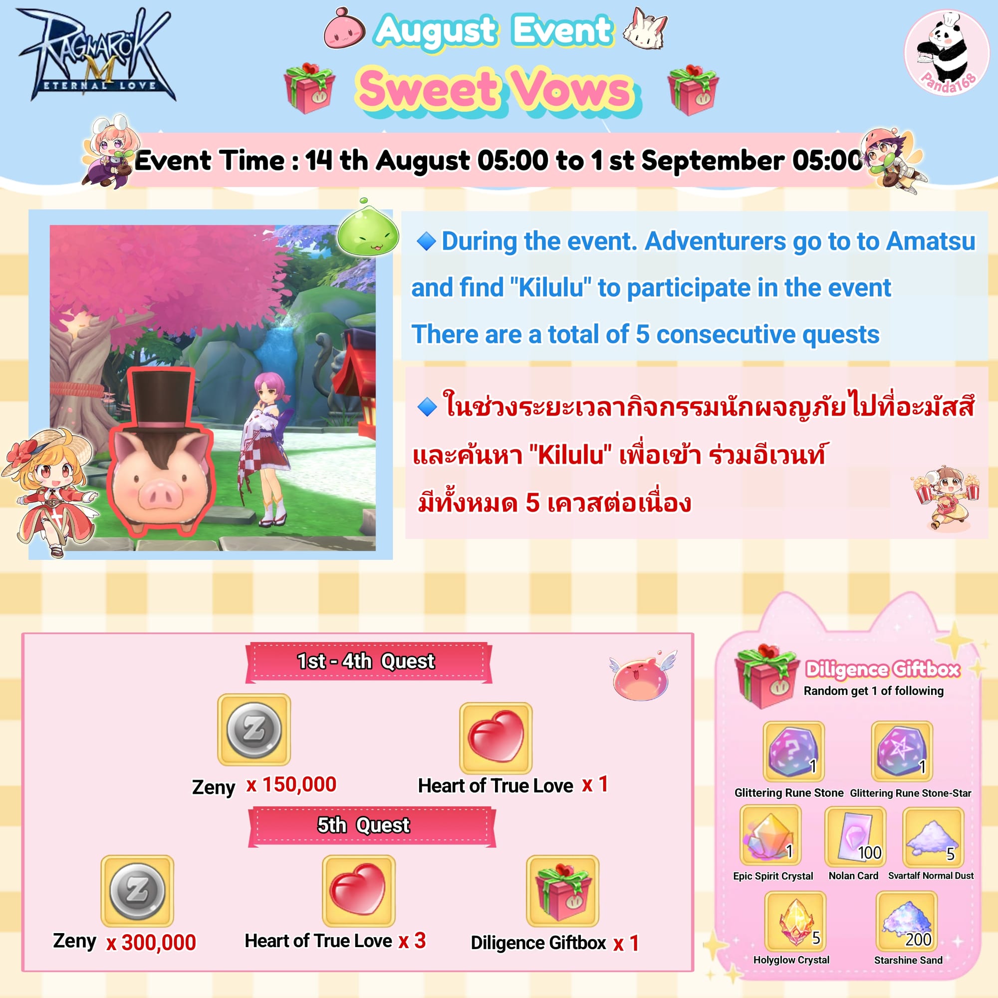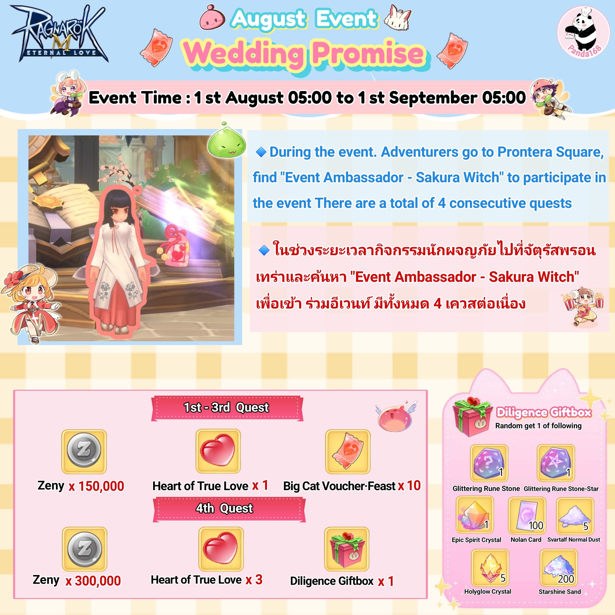 - During the event period, adventurers with Base Level ≥25 can access "Poring's Stamp" through "New Event" - "Wedding Promise."