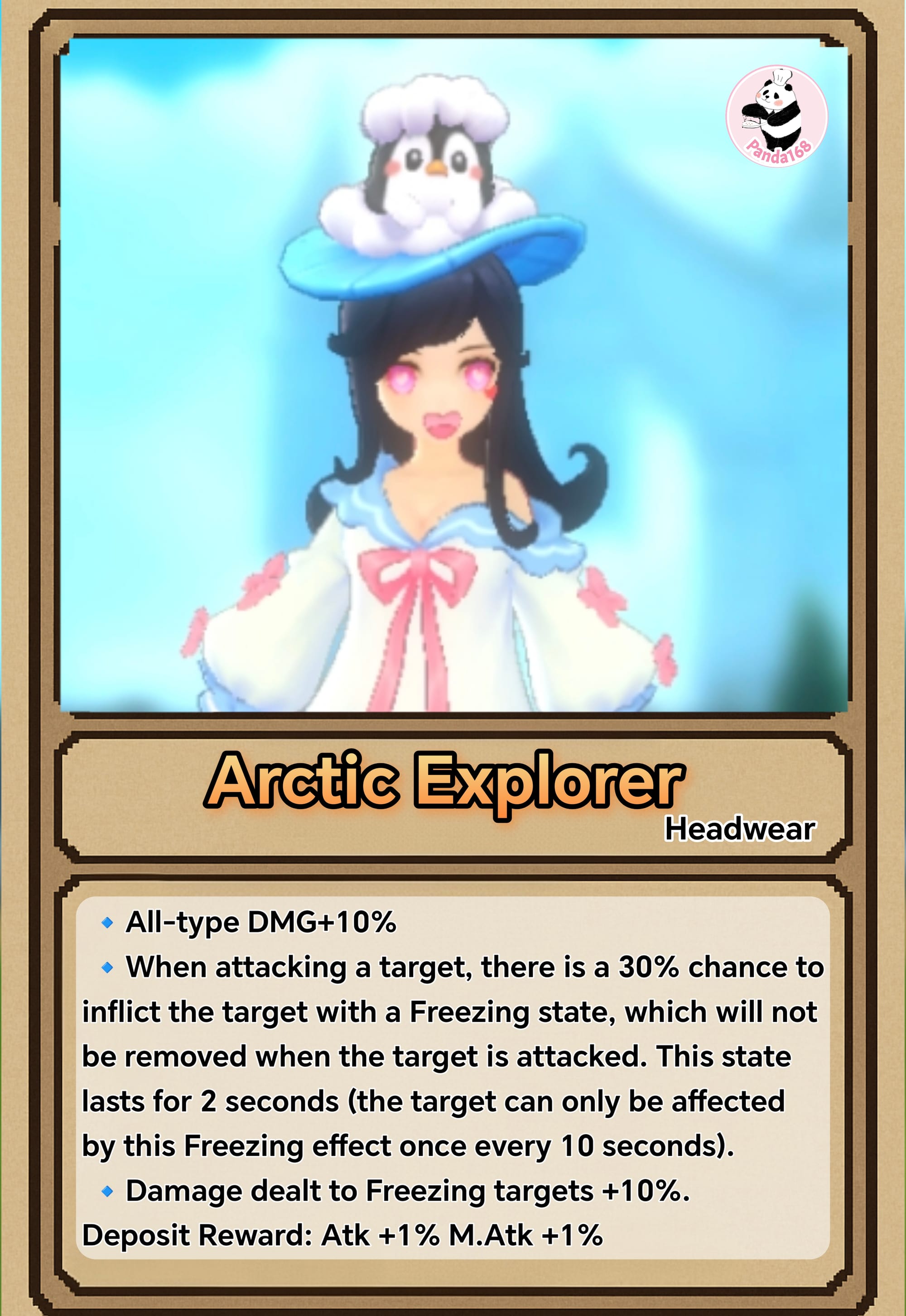- When attacking a target, there is a 30% chance to inflict the target with a Freezing state, which will not be removed when the target is attacked. This state lasts for 2 seconds (the target can only be affected by this Freezing effect once every 10 seconds).