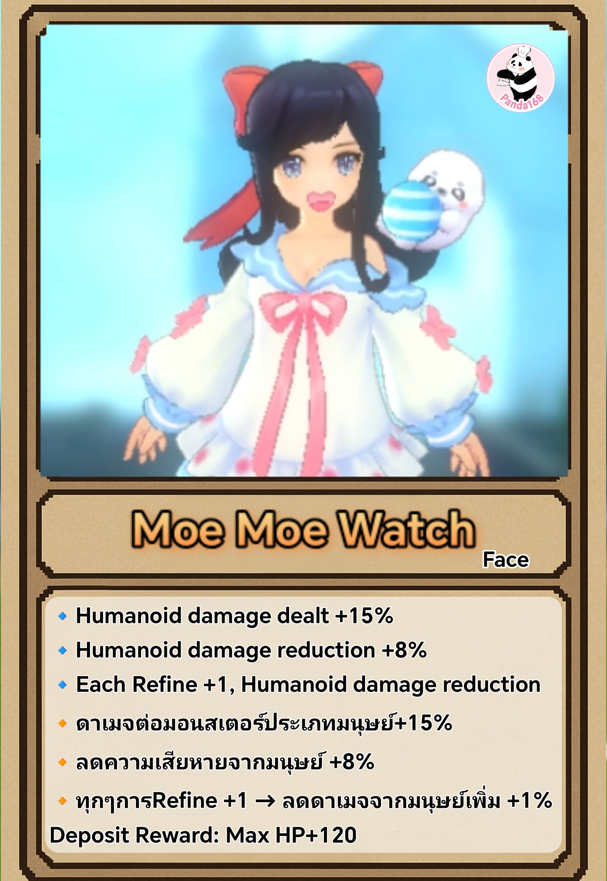 - ทุกๆการRefine +1 → ลดดาเมจจากมนุษย์เพิ่ม +1%