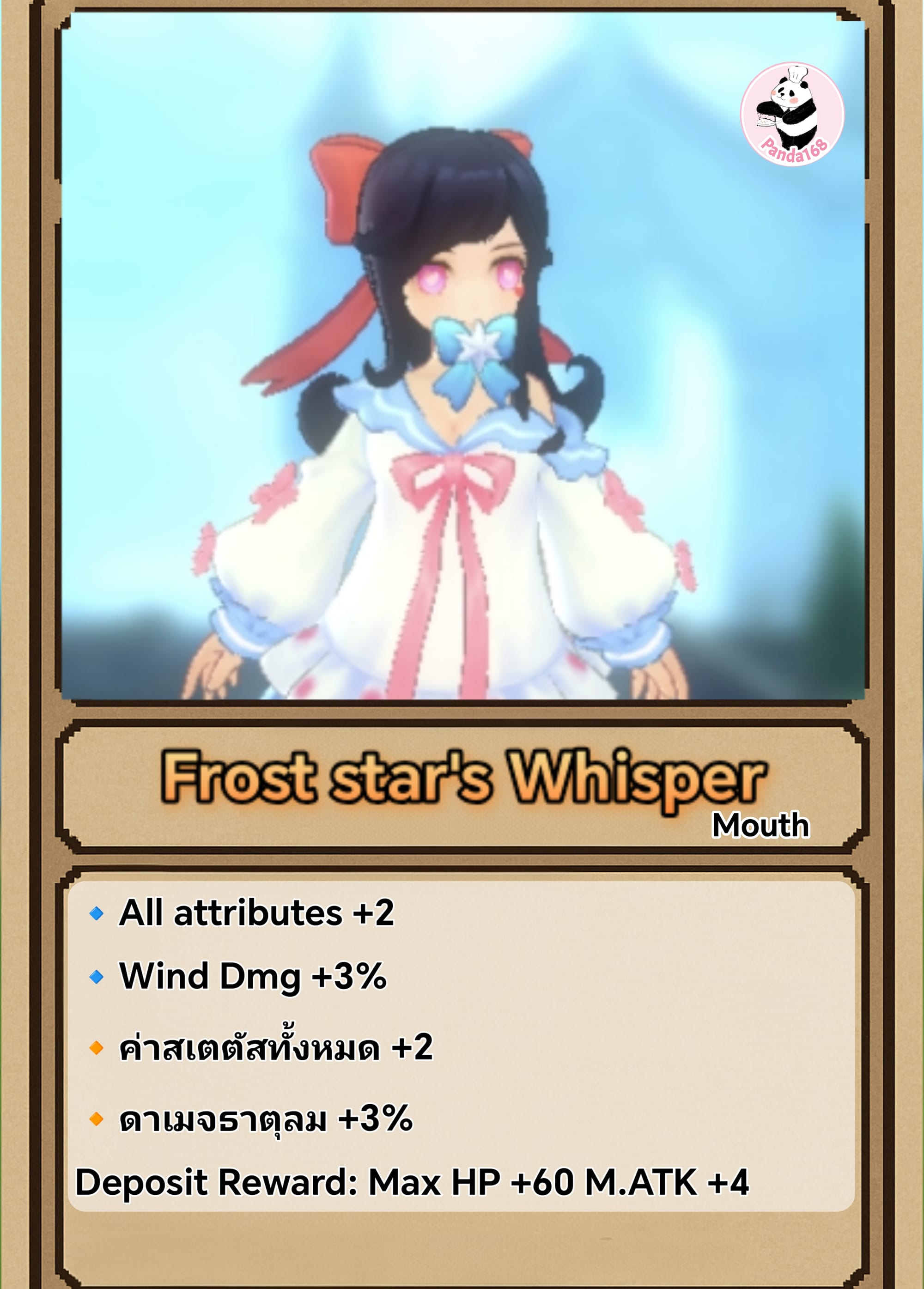 - ลดความเสียหายจากสกิล +8%, ต้านทานการแช่แข็ง +15%