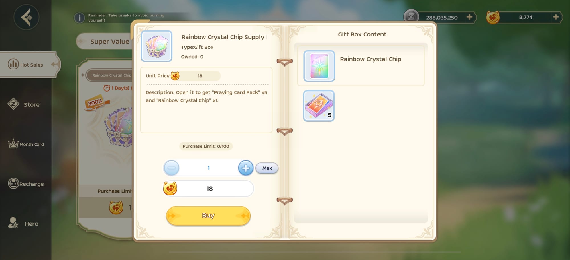 - ทุก 6 ชั่วโมง: คืนค่าลูกเต๋าปกติ 1 ลูกโดยอัตโนมัติ เก็บได้สูงสุด 5 ลูก