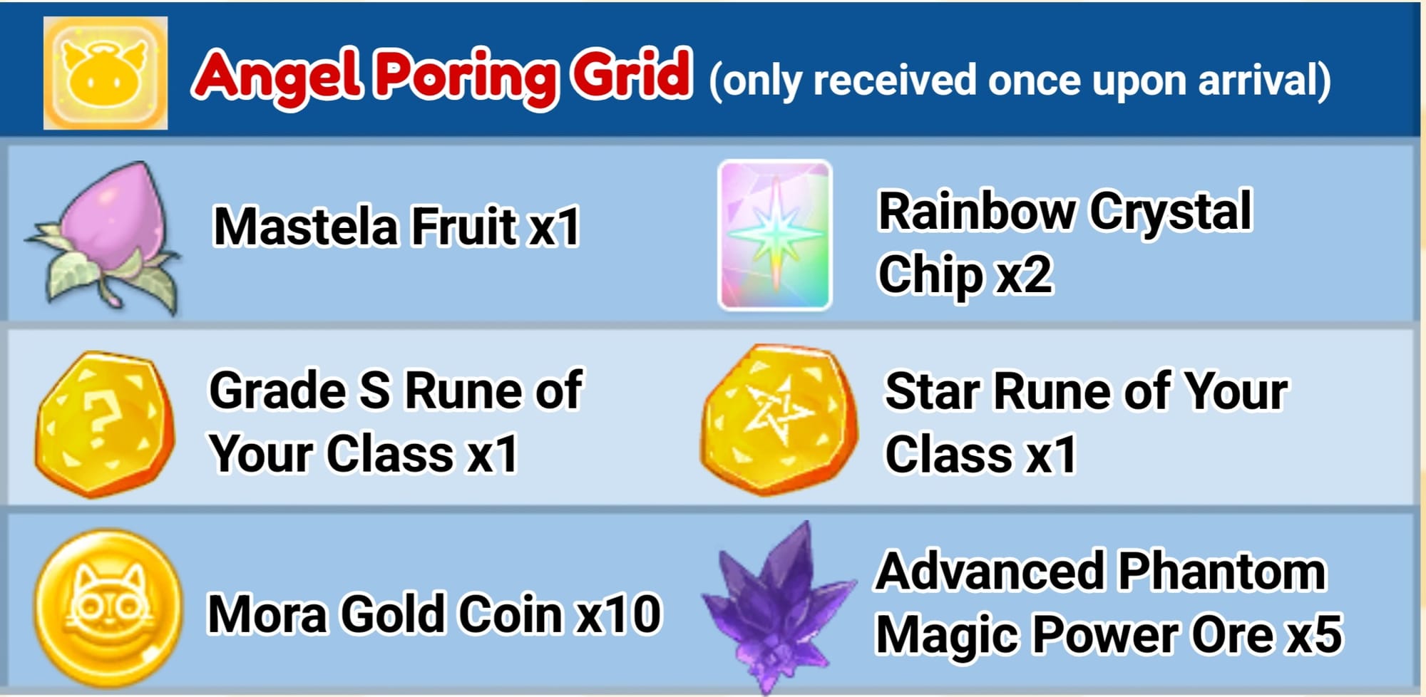 - Angel Poring Grid (ได้รับเฉพาะครั้งแรกครั้งเดียวที่ตกลงในช่อง):