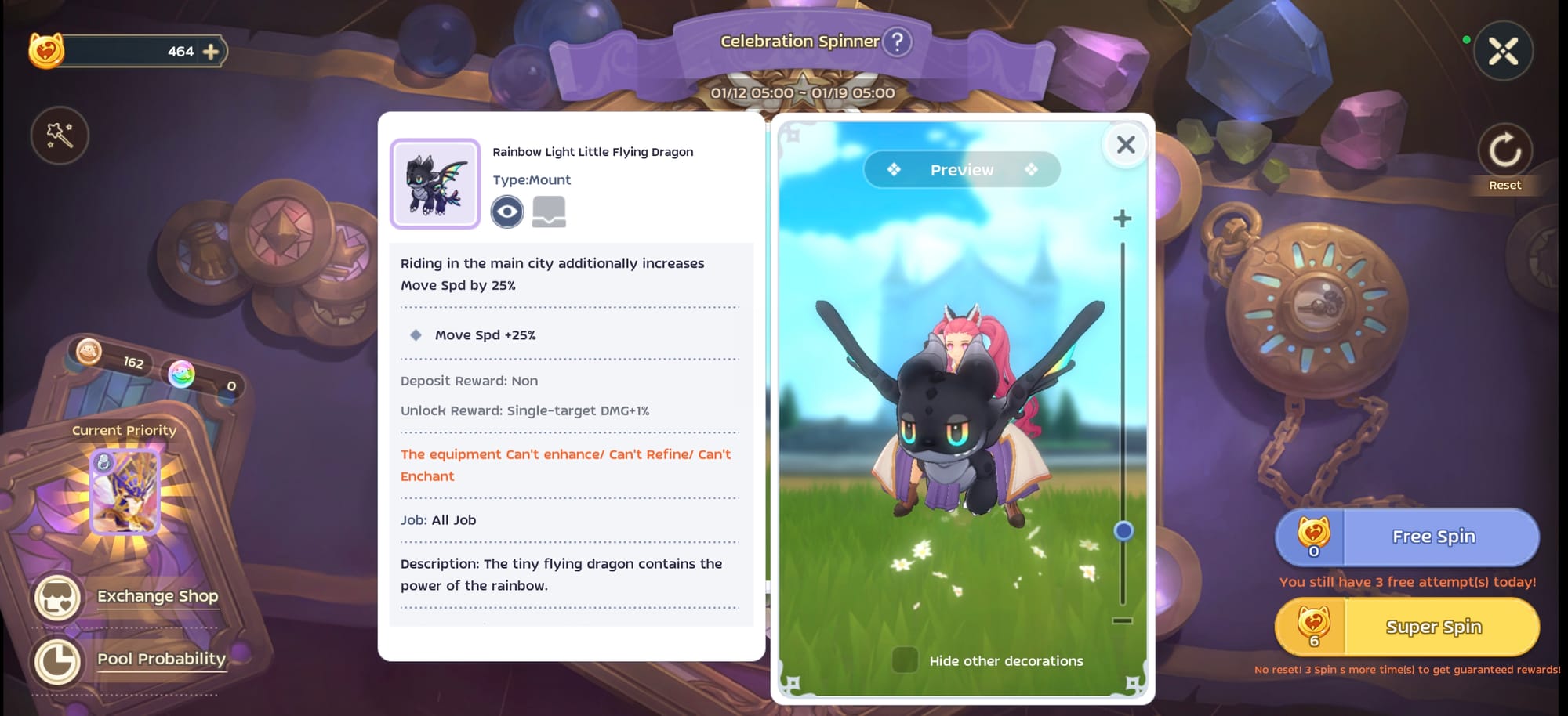 - ในช่วงเวลากิจกรรม [วงล้อแห่งการเฉลิมฉลอง] นักผจญภัยแต่ละคนจะได้รับฟรีสปิน 3 ครั้งต่อวัน รวมเป็นฟรีสปินสูงสุด 21 ครั้ง! (จำนวนสปินฟรีจะ รีเซ็ตทุกวันเวลา 05:00 น. สปินที่ไม่ได้ใช้จะไม่สะสมต่อ)